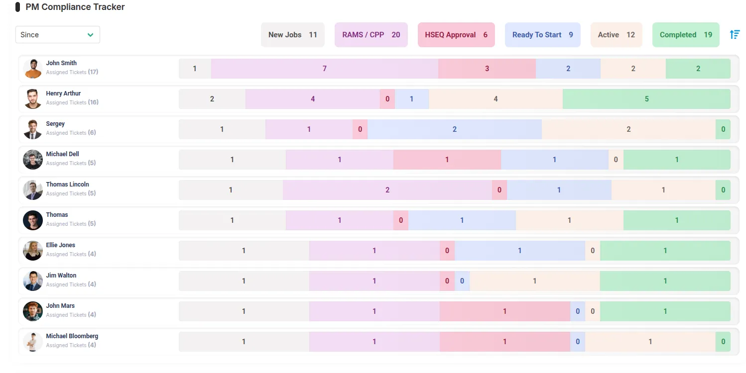 Project Managers also benefit from a dedicated compliance tracker within the platform. It provides a real-time view of the compliance status of all work assigned to them over any defined period, helping ensure that every job progresses with full oversight and assurance.