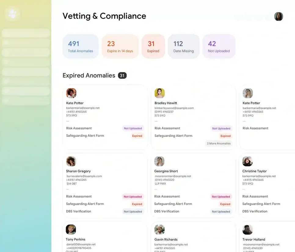 Suppliers are vetted and onboarded through a structured process that captures critical data such as insurance details, accreditations and competency evidence. Once onboarded, Arez.io continues to track their compliance in real time through automated document verification, giving SEE Services confidence that every service partner meets the required standards at all times.
