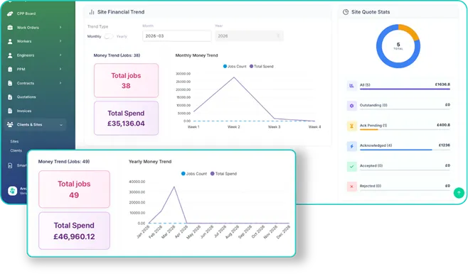 With Arez, you can track spend across your estate in real time, by site, by month, or over time, making it easy to spot trends, identify high-cost locations, and understand where your budget is being used effectively.