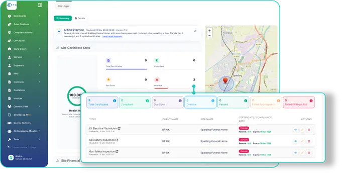 With Arez, everything is visible, connected, and continuously updated in one place. The platform is designed to give you clarity at site level, while supporting tools, like compliance workflows and a mobile app for your teams, ensure everything runs smoothly in practice.